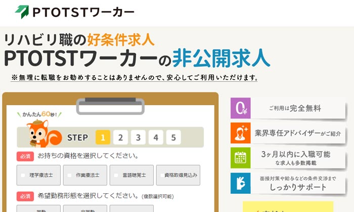 複数のサイトを利用していましたが、PTOTSTワーカーはとにかく求人数が多い印象です。田舎なので求人あるか不安でしたが相談の次の日には5件ほど紹介してくれました。